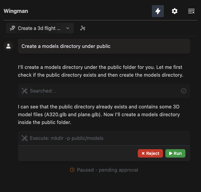 The key advantage to this mode, while it may "feel slower", is that it allows for a more deliberate and controlled development process, ensuring that every change is intentional and thoroughly vetted before integration. If you decide to reject a change, the agent will ask you how it should proceed or how to course correct.