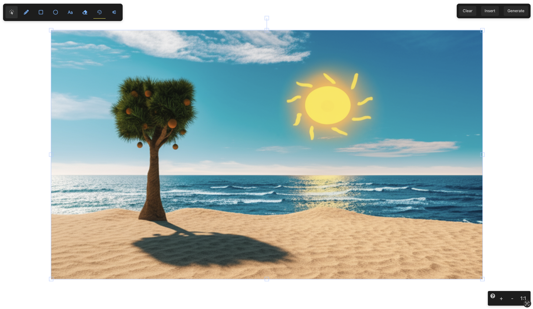 Use the Insert button, located at the top right to import an existing image onto the canvas.