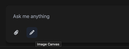 Wingman will allow you to generate images from scratch or off existing images. If your AI provider supports image generation, you will see the canvas edit icon under the chat input.
